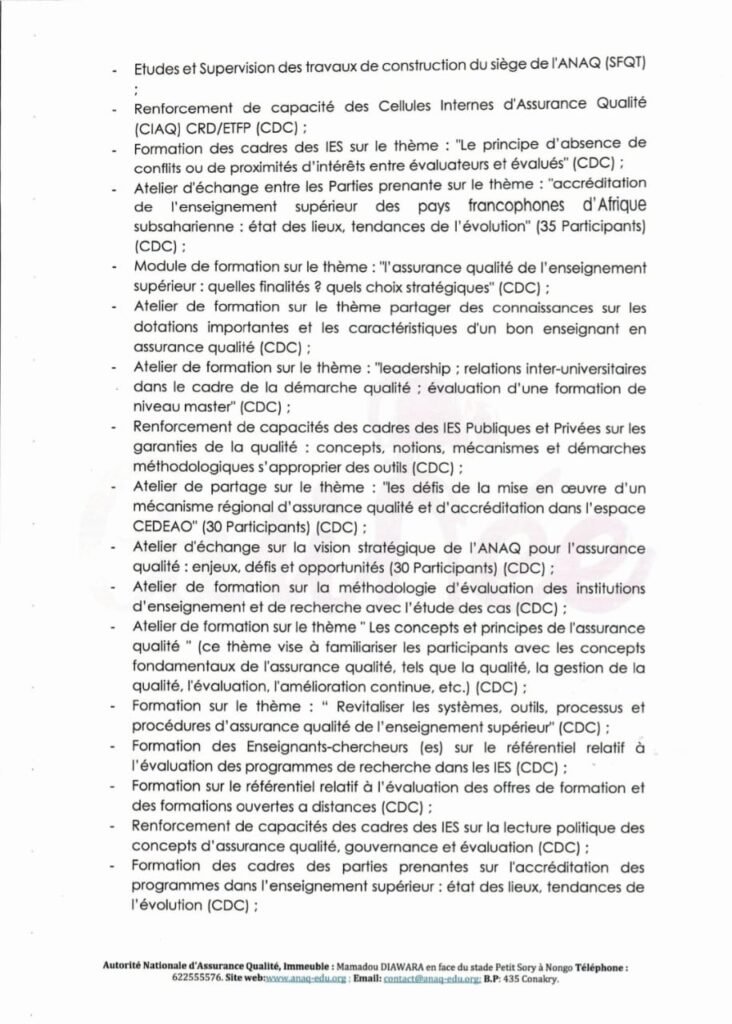 Dans le cadre de l’exécution de son budget annuel, l’Autorité Nationale d’Assurance Qualité (ANAQ) vient de publier son avis général de passation des marchés pour 2026. Entre modernisation des équipements, renforcement des capacités des enseignants-chercheurs et grands travaux d’infrastructure, l’institution ouvre de vastes opportunités aux prestataires pour soutenir l’excellence du système éducatif guinéen.