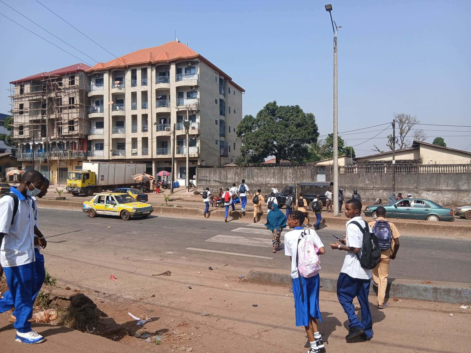 À leur arrivée, ils ont trouvé face à eux des élèves d’une école privée, située sur la transversale n°2. Ces derniers étaient déterminés à assurer la continuité de leurs cours malgré le mouvement social en cours.
