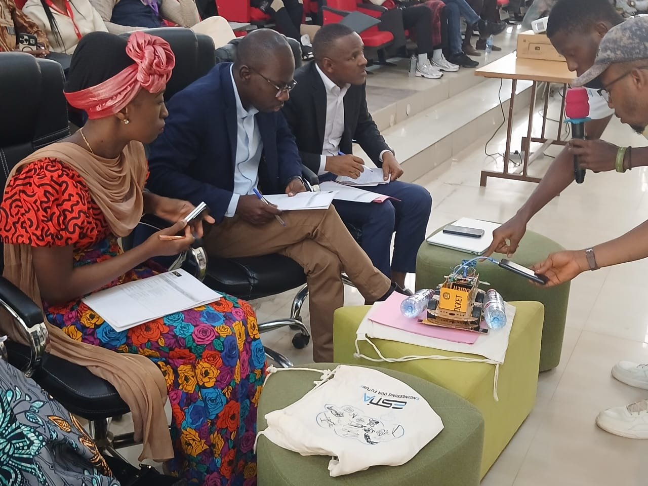Au milieu de cette effervescence, une figure s’est distinguée : Diallo Hadjiratou, étudiante en Licence 3 (TIC) à l’Université Gamal Abdel Nasser de Conakry. Son équipe a remporté le premier prix grâce à un prototype de robotique simulant des solutions pour le groupe Orange.