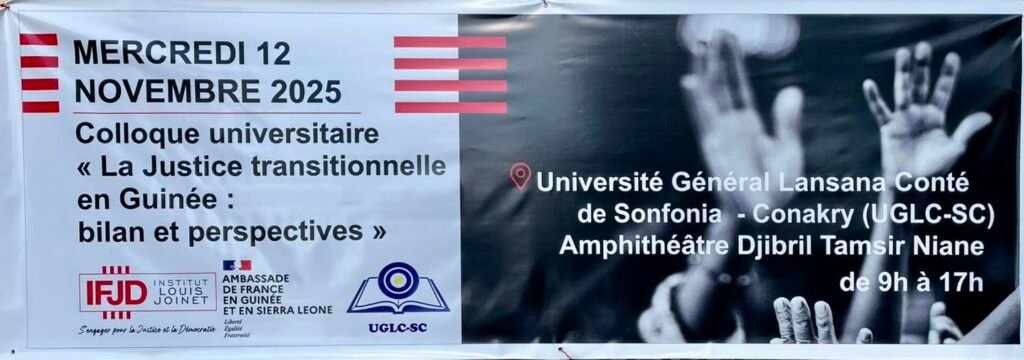 Cette question, à la fois simple et puissante, a résonné ce mercredi 12 novembre 2025 dans l’amphithéâtre Djibril Tamsir NIANE de l’Université Général Lansana CONTE de Sonfonia, à l’occasion d’un colloque consacré à la justice transitionnelle en Guinée.