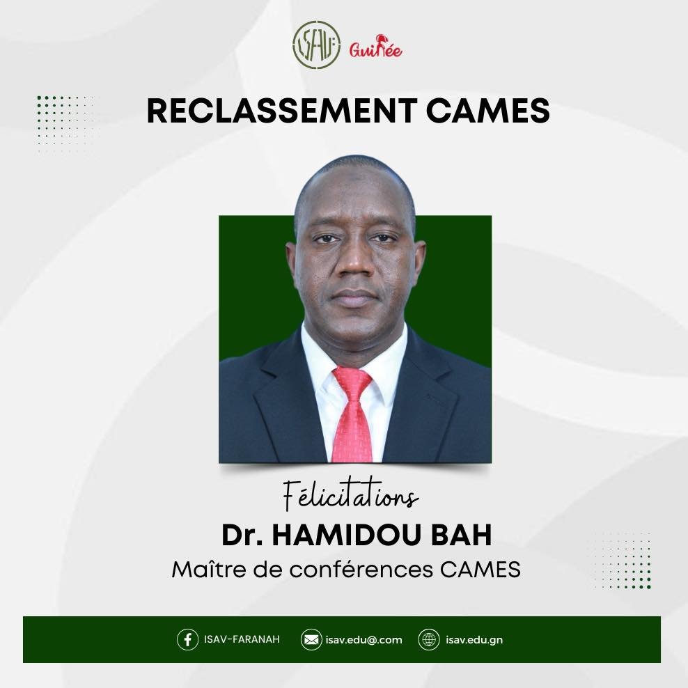 L’Institut Supérieur Agronomique et Vétérinaire de Faranah a brillamment réussi lors de la 47e session des Comités Consultatifs Interafricains (CCI) du CAMES, qui s’est tenue à N’Djamena du 7 au 16 juillet 2025.
